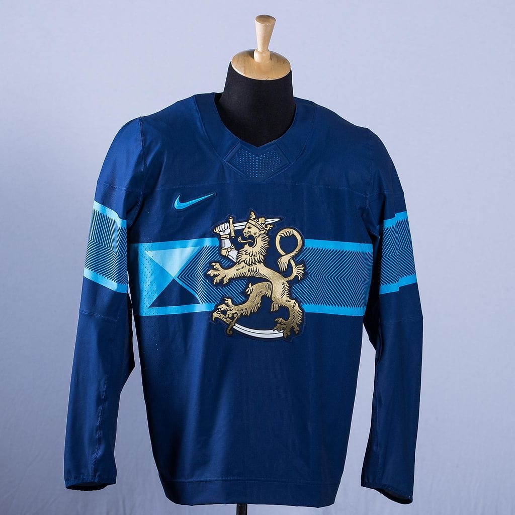 Leijonien Milanon olympiapaita edustaa modernia, pelkistettyä tyylikkyyttä. Kuva: Suomen jääkiekkoliitto